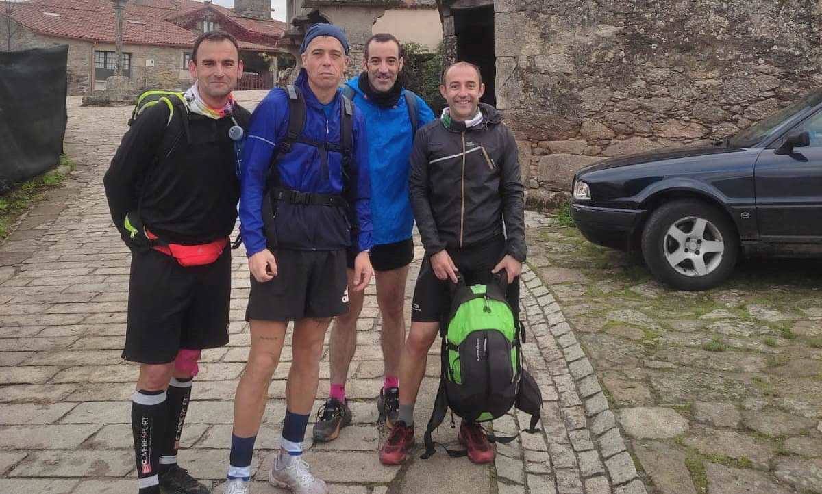 Alán Otero, Fermín Muñoz, Ángel Luis Nevado y Miguel Ángel Arjona están cada vez más cerca de cumplir el reto de llegar a Santiago de Compostela corriendo desde Sarriá en tres etapas, cada una de ellas de casi cuarenta kilómetros, con mochila incluida de media decena de kilos de peso.
