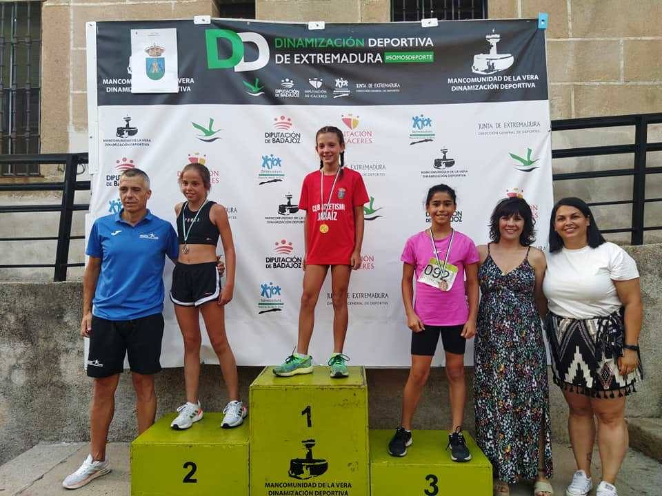 Si Ángel Luis Pérez Nevado ha ganado las seis pruebas celebradas, en Veterano A, en alevín femenino Daniella Paniagua Hernández lleva el mismo récord, seis victorias en seis carreras. Además, con su camiseta talismán, la roja de la escuela de atletismo, promocionando de paso a Jaraíz.