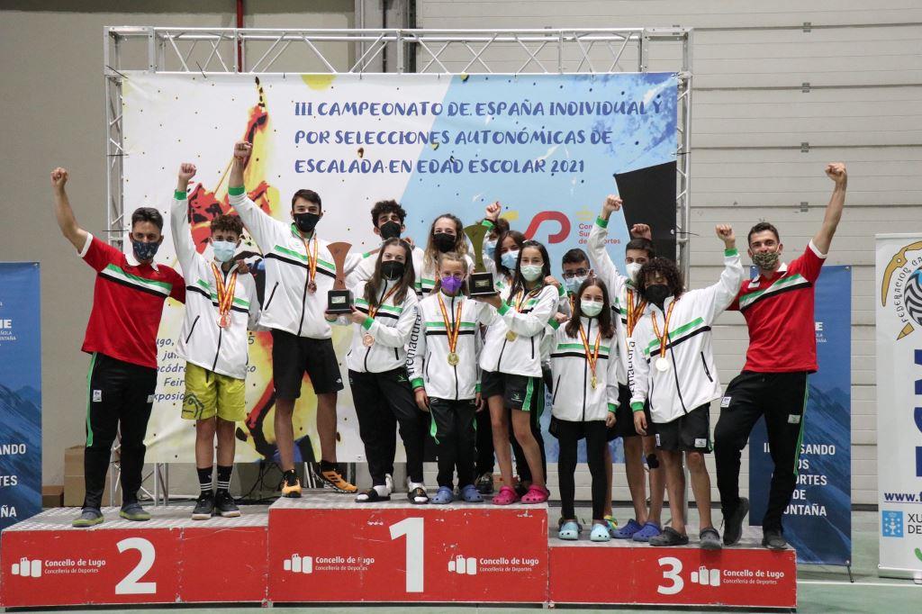 Del 22 al 25 de julio se ha celebrado en Lugo el III Campeonato de España de Escalada Individual y por Selecciones Autonómicas Infantil y ... Cadete 2021. La competición se ha desarrollado en formato 'Overall', en la que los deportistas, además de participar de manera individual, lo han hecho puntuando globalmente por equipos sumando los puntos obtenidos por cada uno de los participantes de cada categoría, seis en total: tres chicos y tres chicas.