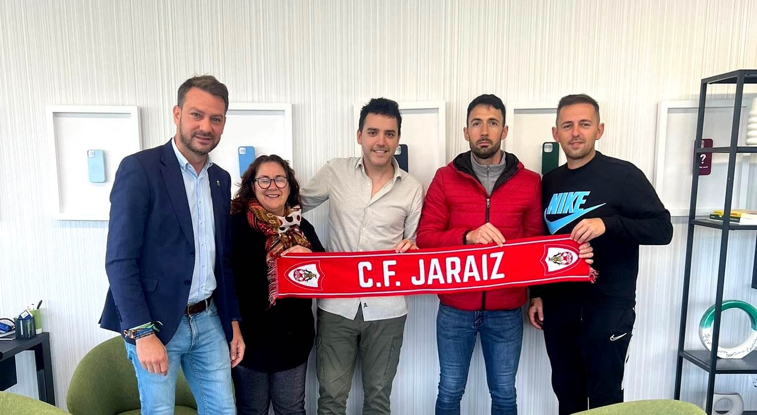 En el acto de la firma del acuerdo han estado presentes el alcalde, Luis Miguel Núñez; la presidenta del club, Ana Isabel Paniagua; el Ceo de la empresa, Ismael Villalobos; y el director deportivo del Jaraíz, Miguelín Villalobos, entre otros.