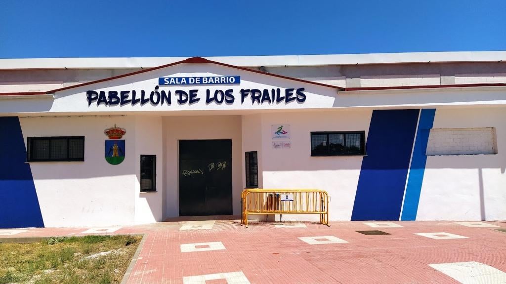 Ya luce en la puerta principal de la instalación deportiva el nombre de 'sala de barrio pabellón de los frailes'