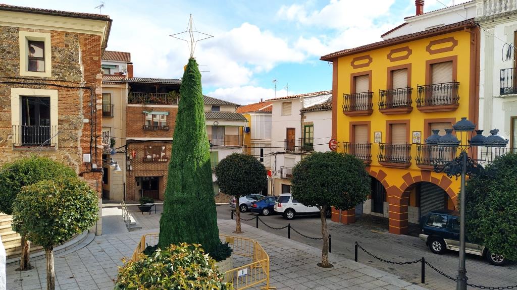 Por primera vez, el espacio público de la avenida del Salobrar también va a contar con un árbol navideño. Ya han empezado los operarios municipales a instalarlo. Dará la bienvenida a los visitantes que entren en la localidad por la carretera de Navalmoral-Almaraz.