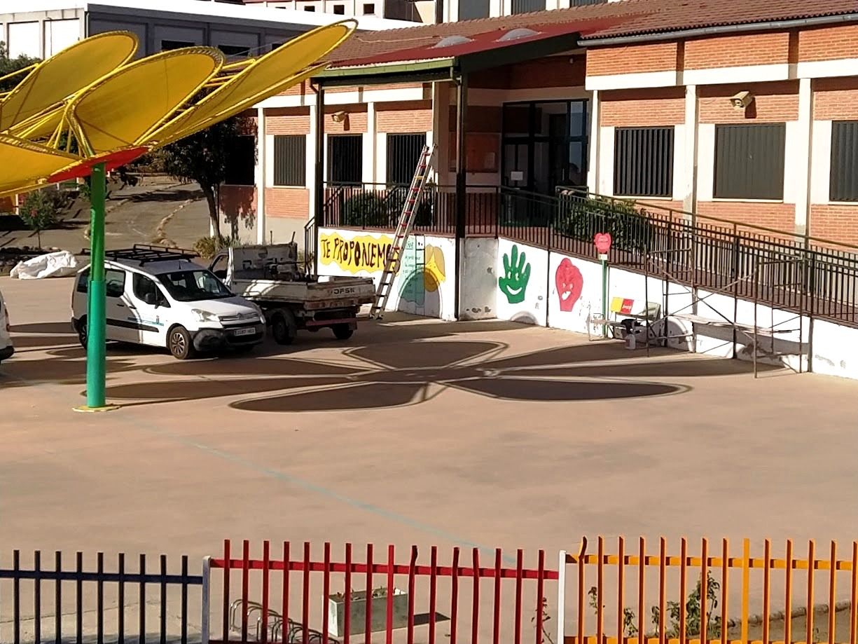 Los trabajos han consistido en reformas puntuales, pintura, limpieza de arquetas, desbroces y otras actuaciones en cada uno de los inmuebles. En el caso del Gregoria Collado, los últimos remates están siendo los del pintado de las barandillas de la rampa de acceso a la entrada principal y escaleras laterales, además del porche que cobija a la misma.