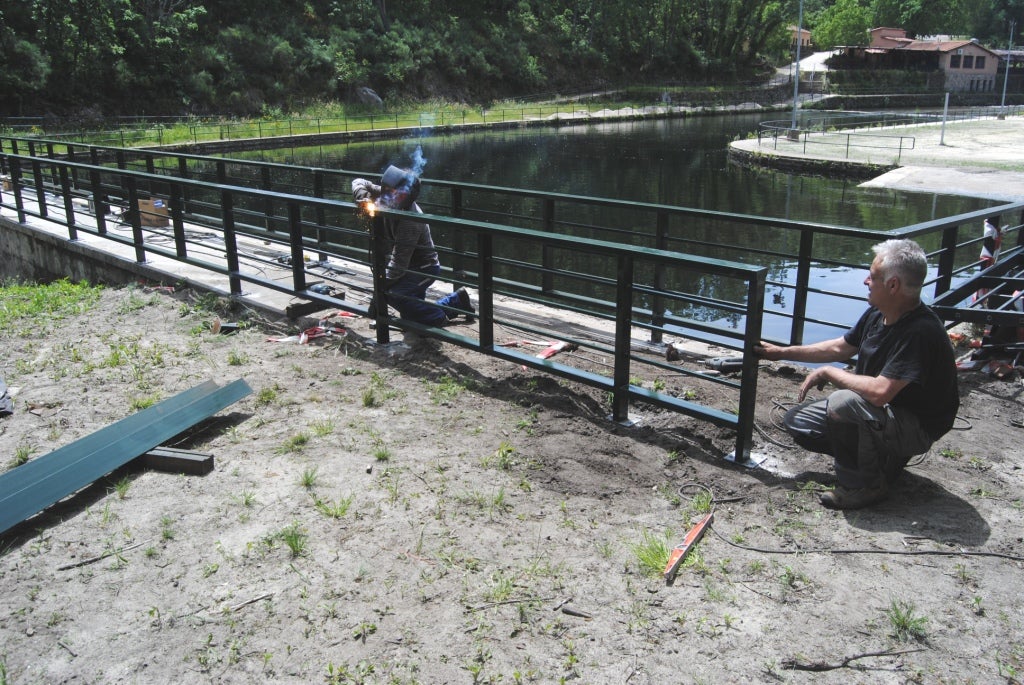 No obstante, las últimas lluvias han vuelto a deslizar arena y troncos, por lo que va a ser necesario otra limpieza más adelante. Normalmente suele realizarse la última a mediados de junio, de ahí que ahora los trabajos se hayan centrado en arreglar los desperfectos. El cambio de la barandilla de la pasarela de la piscina es uno de ellos. El agua la arrancó y retorció en diciembre como como si fuera alambre.