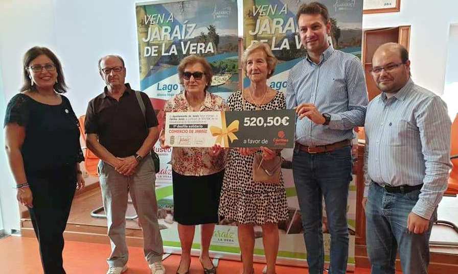 Cáritas Jaraíz ha recibido un cheque por un importe de 520,50 euros de la recaudación del primer desfile solidario del comercio jaraiceño, celebrado el pasado día 21 de septiembre, en el pabellón municipal de deportes de Jaraíz de la Vera, que registró un lleno absoluto, pese al tiempo desapacible que hizo esa jornada.