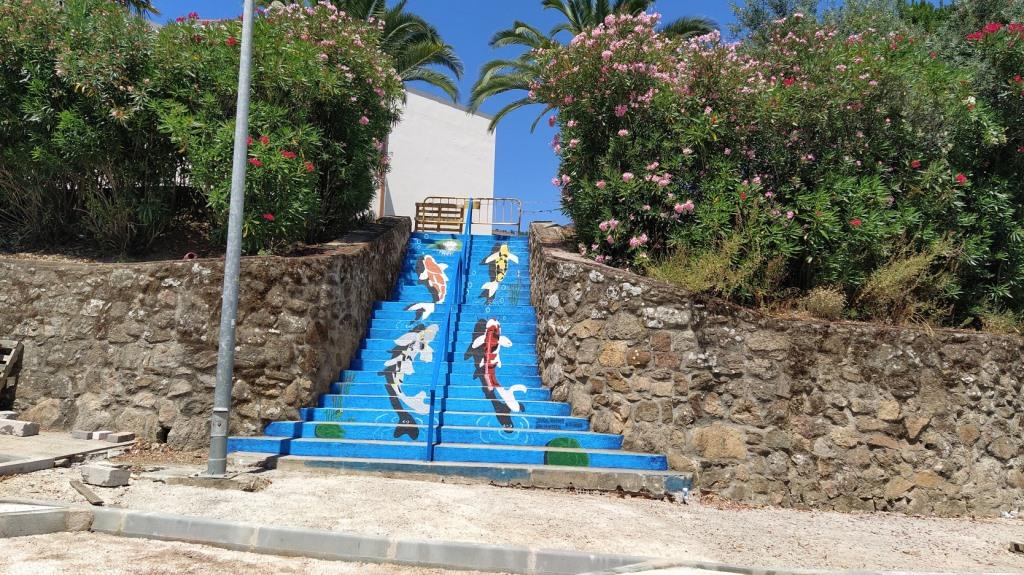Estas mejoras se van a complementar con la transformación de las escalinatas de acceso tanto al Centro de Salud como a la Oficina de Empleo, las cuales se han llenado de colorido con las 'carpas o peces koi' pintados por Jesús Ramos y Ana Montero.