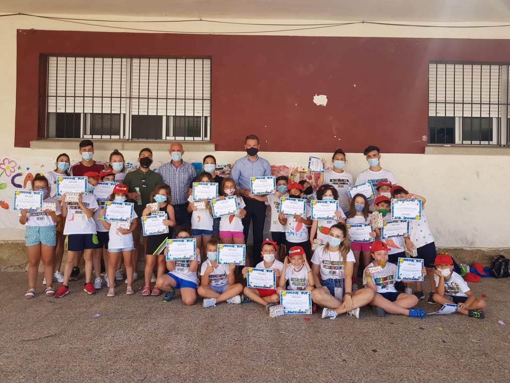 El acto tuvo lugar en el patio principal del Complejo Educativo César Carlos I, al que asistieron el alcalde, Luis Miguel Núñez; el concejal de Obras, Rufo Granado; la concejala delegada de la Universidad Popular, Cintia Gómez; los monitores y los 22 niños que han disfrutado de las actividades llevadas acabadas. Este turno ha dado paso a la siguiente quincena.