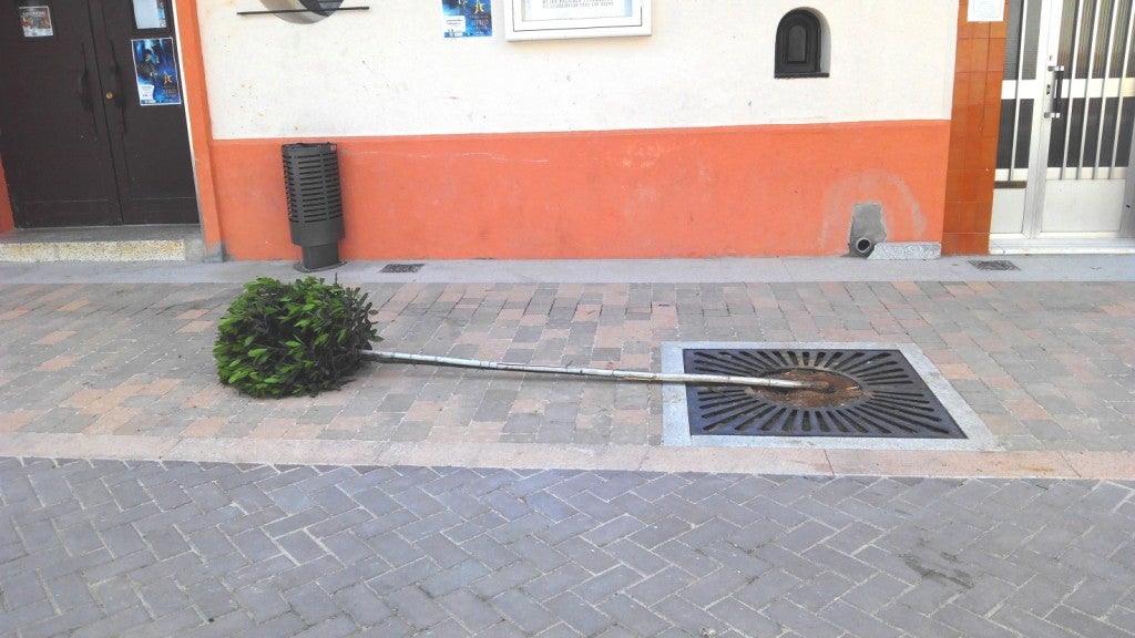 Sin embargo, pese a que no se han acabado las obras e inaugurado ya han roto uno de los árboles (laurel) que adornan esta céntrica vía, situado junto al teatro-cine Avenida. El primero fue tronchado desde la base el domingo por la tarde al dar marcha atrás un vehículo, cuando teóricamente está cerrada al tráfico por obras.