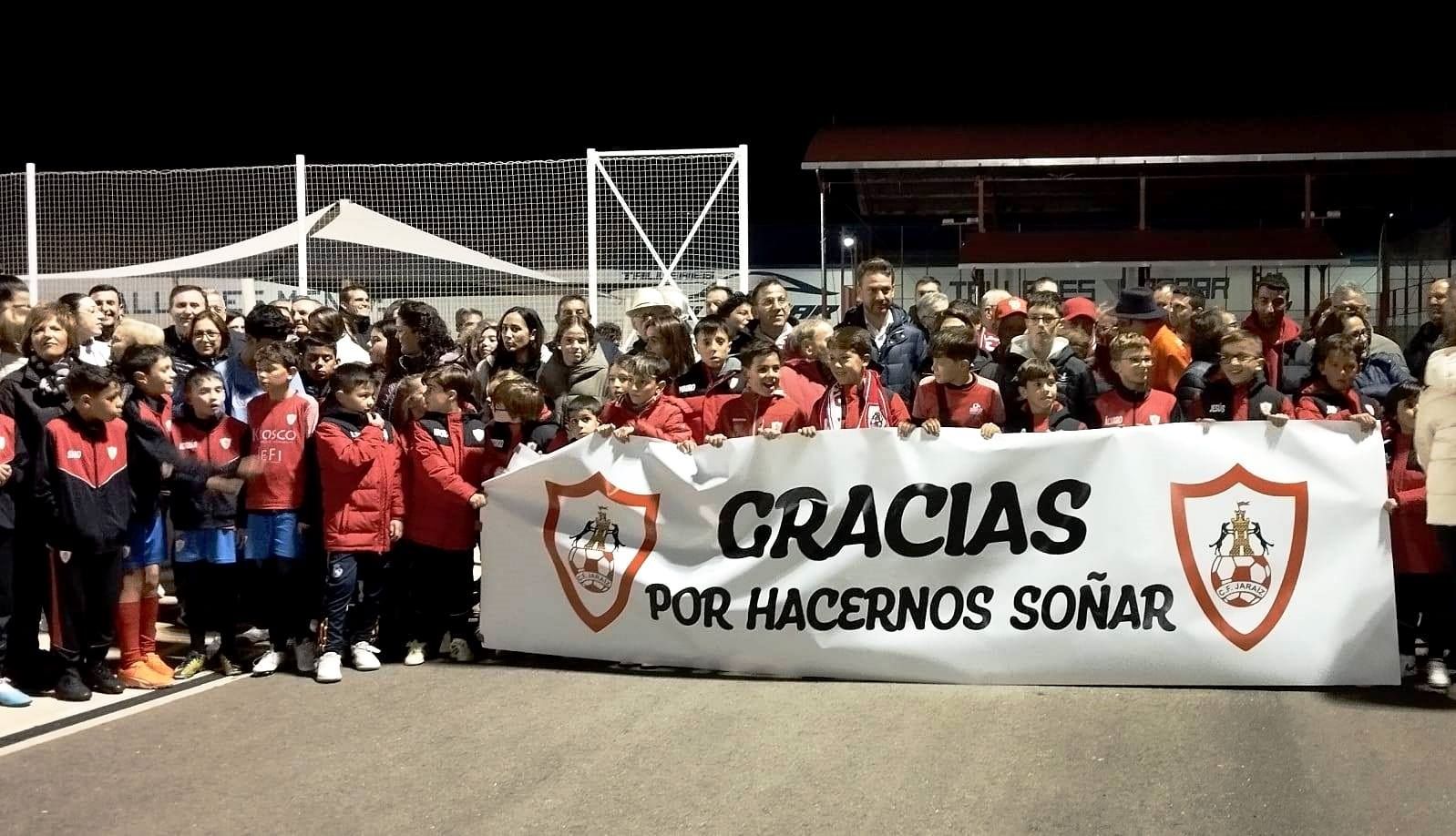 Numerosos aficionados del Jaraíz se dieron cita el lunes por la noche en el polideportivo municipal para dar las gracias a la plantilla por la excepcional competición que está realizando en la Tercera División, motivo por el que tiene a todo un pueblo en una nube de ilusión.