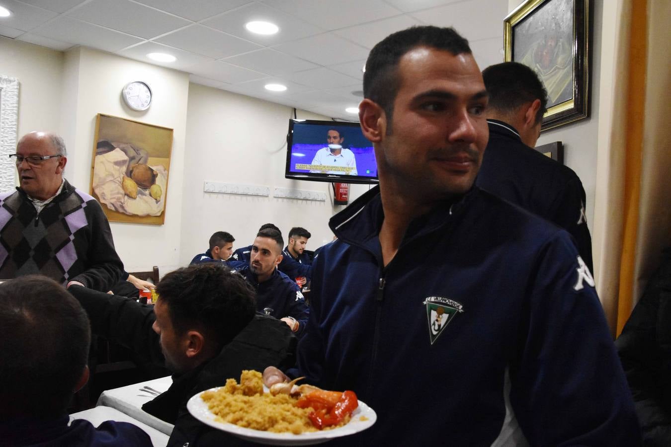 El Hogar Extremeño de Barcelona invitó ayer martes a los jugadores y cuerpo técnico del Villanovense a degustar migas extremeñas, condimentadas con pimentón de la Vera.