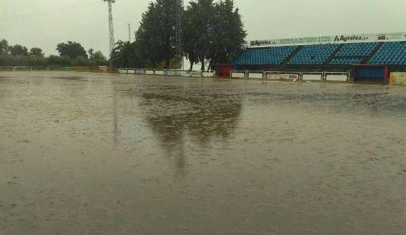 El campo del polideportivo municipal jaraiceño está totalmente encharcado e impracticable para el fútbol por el barro