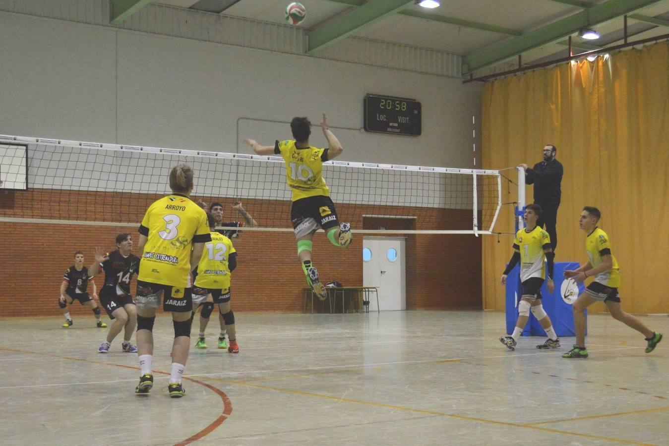 El partido de segunda división se jugó en Aldeanueva de la Vera al estar ocupado el pabellón municipal de Jaraíz por otro evento. El público de Aldeanueva, no obstante, arropó al Voleibol Jaraíz como si fuera un equipo local