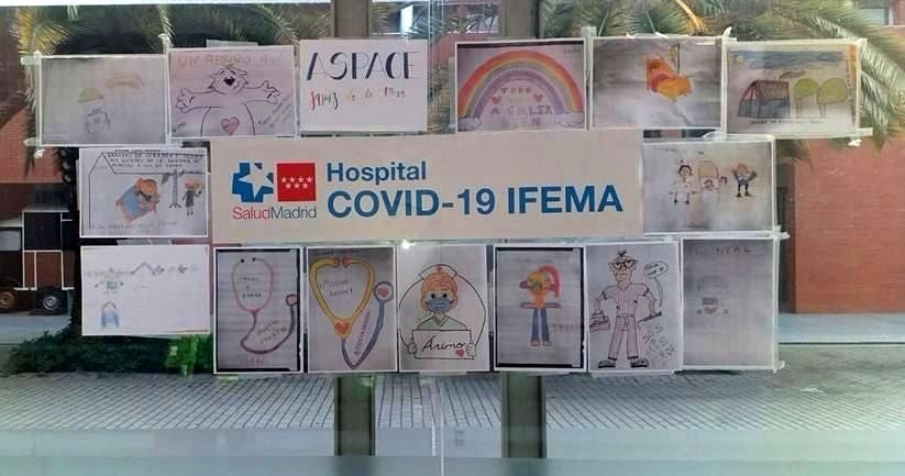 Pretendían llenar de alegría y colorido las paredes de IFEMA con sus dibujos, protagonizados por los sanitarios y pacientes. Y, finalmente, lo han conseguido. Ya están expuesto allí por iniciativa de la psicóloga del centro jaraiceño y la mediación de su madre, enfermera de IFEMA.