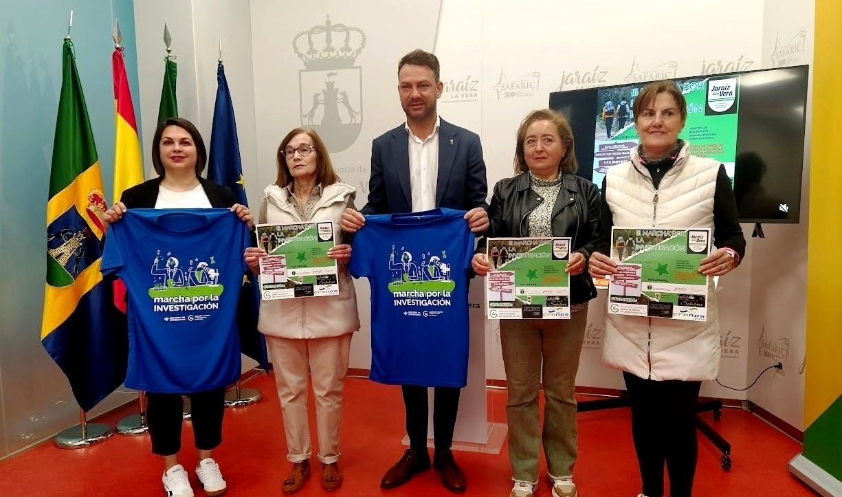 La entrega de camisetas y bolsas se realizará el sábado 5 de abril, a las 18 horas, en la Plaza Mayor jaraiceña, junto a la Casa Consistorial, en donde ha tenido lugar la presentación de la marcha por parte del alcalde, Luis Miguel Núñez; acompañado de la concejala de Deportes, Cintia Gómez; y por la AECC, Julia Pérez, la presidenta; Loly Amor y María José Ortiz.
