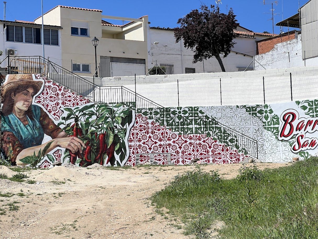 Además, como atractivo, se está pintando un mural dedicado a la mujer jaraiceña, pero en su papel de pimentonera, seña de identidad de la localidad, a modo de homenaje a tantas generaciones que han precedido a las actuales labrando un Jaraíz mejor.