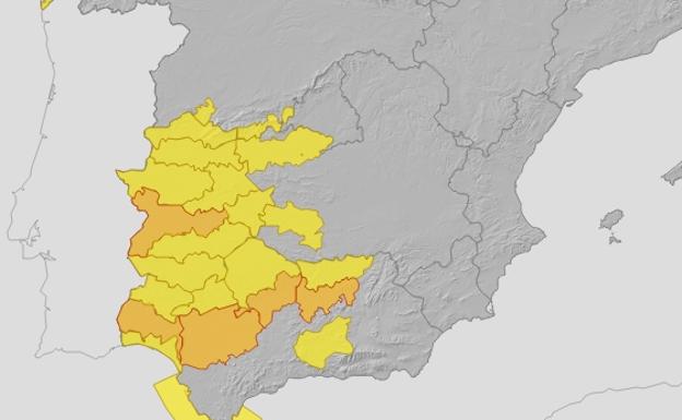 Este martes estaban activos los avisos amarillos por temperaturas máximas en las Vegas del Guadiana, Montánchez y Villuercas. Para mañana, la Aemet mantiene los avisos de este martes y se podrían alcanzar los 39 grados en las Vegas del Guadiana y los 38 en Montánchez y Villuercas.
