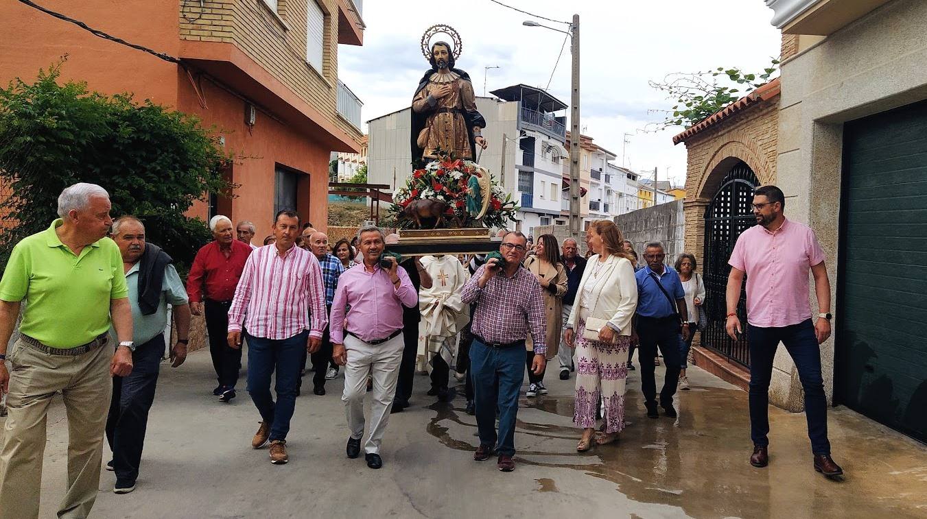 La procesión salió de ... la iglesia de San Miguel, a las 20 horas, finalizando en la barriada de San Isidro, cuyas calles fueron adornadas por los vecinos para recibir a su patrono. La misa de campaña tuvo lugar en la zona ajardinada, presidida por el párroco, Juan Antonio Corrales.