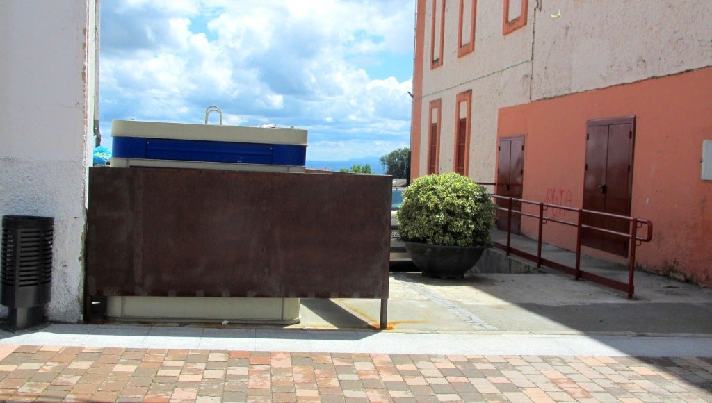 Los contenedores anexos al teatro-cine ocultados mediante la colocación de una mampara