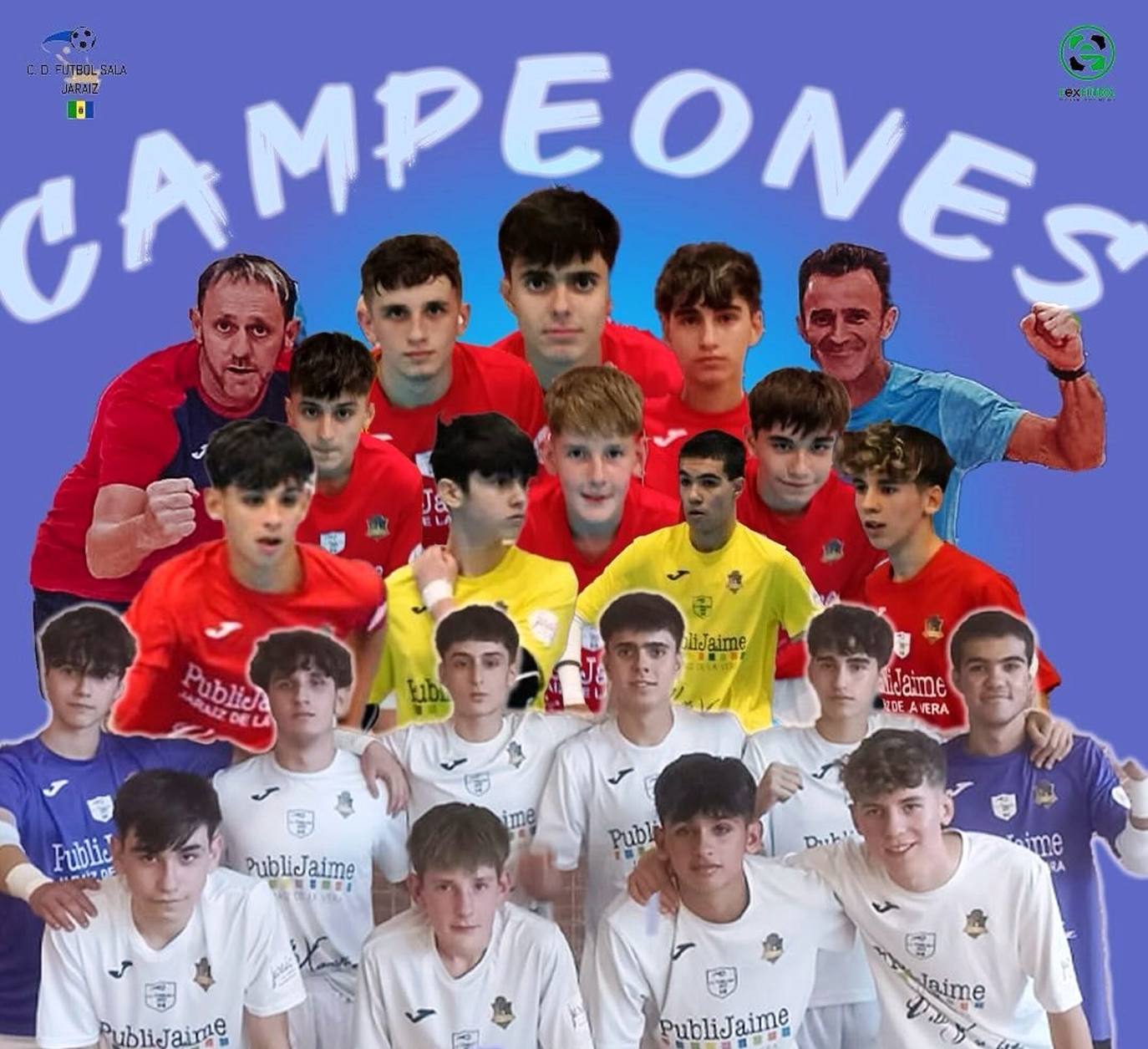 El equipo cadete jaraiceño, dirigido por Marcial Cañada Sánchez y Luismi Garrido Paniagua, ha estado formado en esta histórica y triunfal jornada por Jorge, Marco, Álex, Guille, Robert, Víctor, Sergio y Borja. Y como porteros, Domin y Carlos.