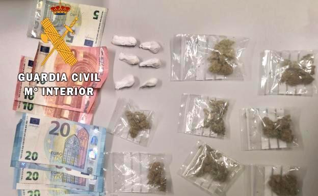 La segunda actuación tuvo lugar el mismo día, cuando, en torno a las 23 horas, agentes de la Guardia Civil de Jarandilla de la Vera, identificaron a un joven en una zona de ocio de Losar de la Vera que portaba en una riñonera once bolsitas con marihuana lista para su venta, así como seis bolsitas pequeñas que contenían cocaína y 235 euros fraccionados en billetes de diverso valor, informa el cuerpo en nota de prensa.