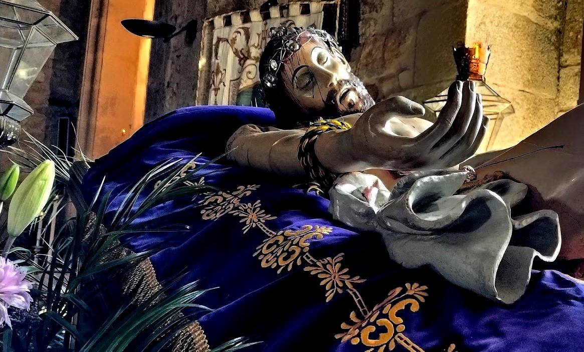 El paso titular de la procesión, un Cristo yaciente, es una talla policromada y articulada perteneciente la escuela de Gregorio de Fernández de su época en Plasencia