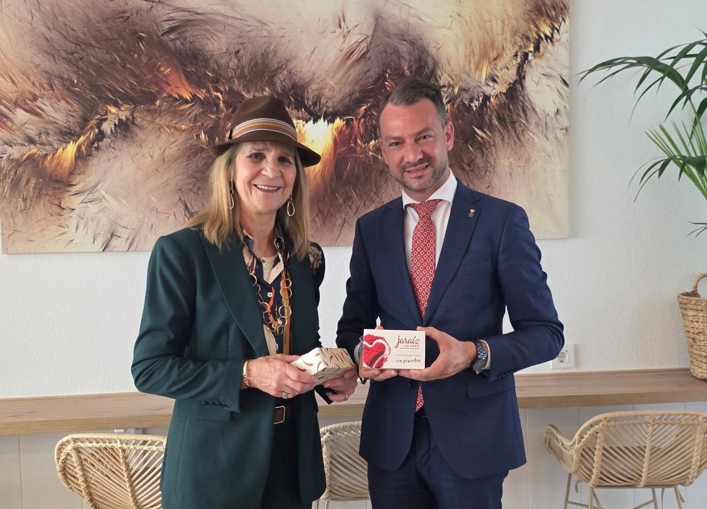 Casi un siglo después, camino de 99 años, una bisnieta del monarca, la Infanta Elena, también se ha rendido a la excelencia del oro rojo verato, al recibir de manos del alcalde, Luis Miguel Núñez, un estuche de cartón, que lleva en el anverso y reverso el eslogan oficial de 'Jaraíz de la Vera, Capital Mundial del Pimentón', conteniendo varias latas de este emblemático producto.