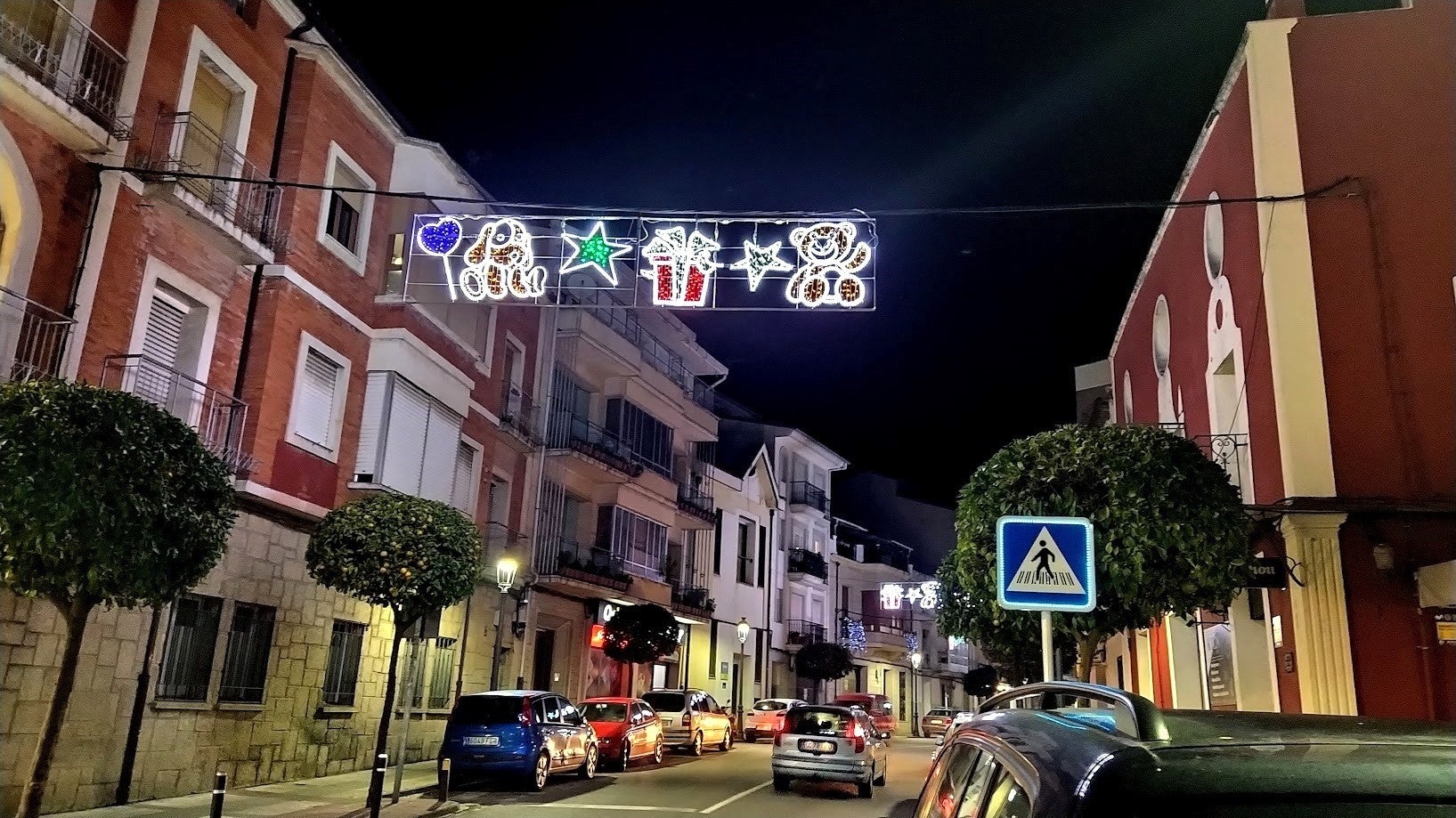 La iluminación multicolor luce ya en las avenidas de la Constitución, Salobrar y Yuste, así como en la Plaza Mayor, Santa Ana y Encisos, además de las calles Derechos Humanos y Damas, cuyo alumbrado en ambas es similar y novedoso.