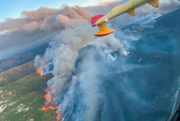 Los medios aéreos retoman las labores de extinción de los fuegos de La Vera y Las Hurdes