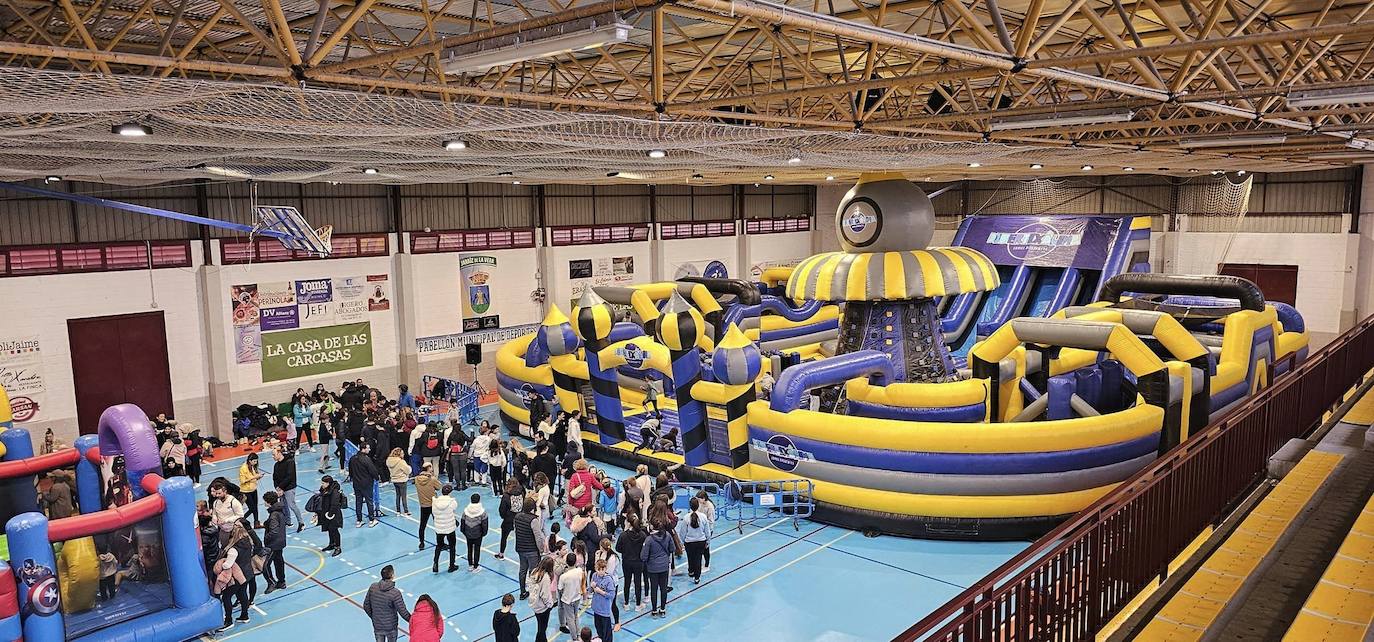 Los niños han vuelto a disfrutar este viernes por segundo día consecutivo de la ciudad hinchable multiaventura, instalada en la pista polideportiva del pabellón municipal ... de deportes, así como del tren turístico.