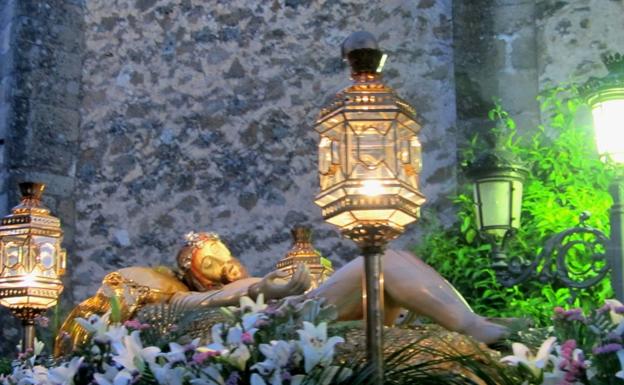 Hoy viernes saldrá en procesión, por un largo itinerario por el centro urbano jaraiceño, a las 21.30 horas. A acompañarán al Cristo del Sepulcro otros pasos, la mayoría relevantes por sus características: La Virgen de los Dolores, el conjunto del Calvario (Primer premio en imaginería, Barcelona, 1928), la Magdalena y la Virgen de la Soledad, vestida en terciopelo negro con bordados en oro y corona de plata. Esta procesión, la del Santo Entierro, es seguida por varios centenares de personas.