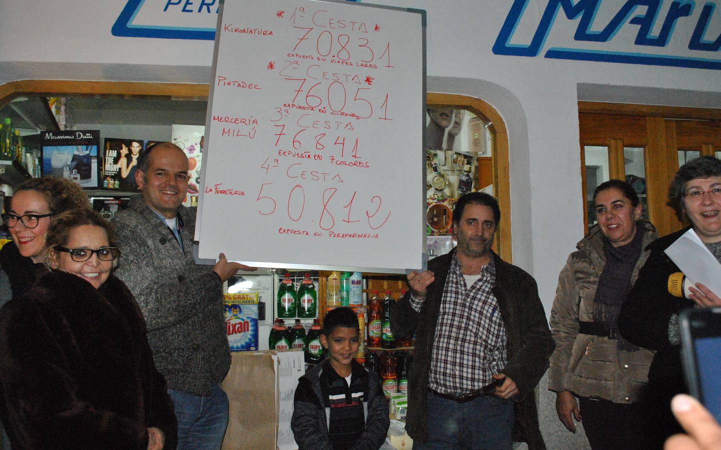 Los números de las papeletas agraciadas son el 70831, cesta uno; 76051, cesta dos; 76841, cesta tres; y 50812, cesta cuatro. Los premios se podrán recoger hasta las 14 horas del día 15 de enero. Si alguno no aparece se volverá a sortear ese día por la noche.