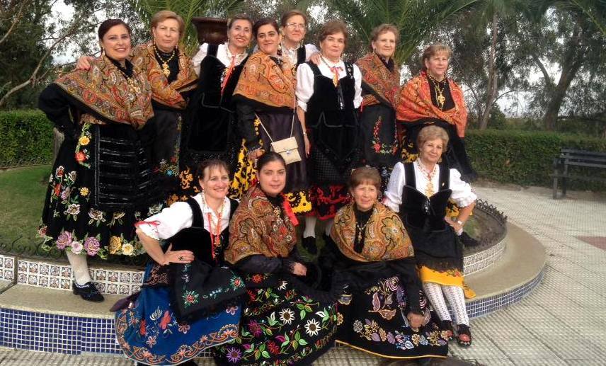 El grupo de jotas de la Asociación de Amas de Casa Mujer Jaraiceña actúa esta tarde, en la Plaza Mayor, con motivo de la celebración hoy domingo, en Jaraíz de la Vera, del día del traje regional.