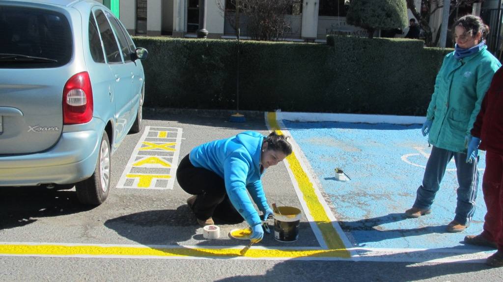 Operarias municipales del Servicio de Obras ya han delimitado y pintado la plaza reservada para este cometido, faltando únicamente la señalización vertical.