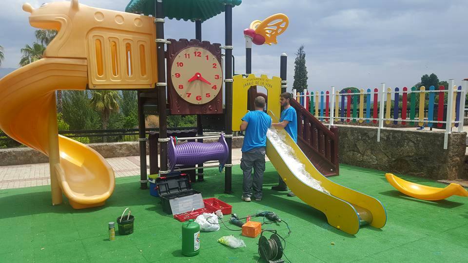 En relación a los niños, otra de las actuaciones municipales están siendo los parques infantiles. En el ubicado en mirador Puente Los Bolos, se está mejorando el mobiliario. En este enclave se ha instalado un nuevo tobogán.