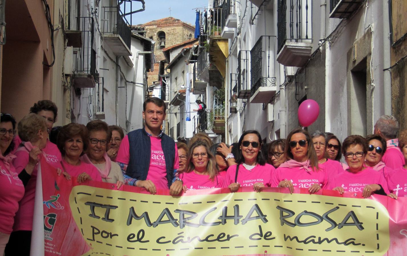 Un millar de personas participaron este domingo en la II marcha rosa contra el cáncer de mama, celebrada al mediodía en Jaraíz de la Vera, ... cuyo inicio estuvo precedido por la intervención de la presidenta provincial de la Asociación Española Contra el Cáncer (AECC), Carmen Romero, y del alcalde de Jaraíz, Luis Miguel Núñez, quienes dieron las gracias a los asistentes y un soplo de esperanza a los enfermos en general de cáncer y a sus familiares.