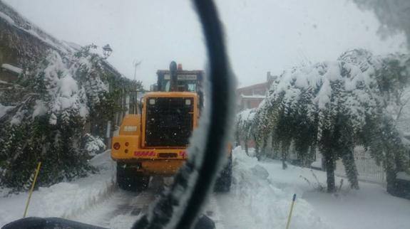 Desde las 02,15 horas efectivos de Diputación Provincial de Cáceres y el Ayuntamiento de Piornal están trabajando para mantener limpias las carreteras ante a la fuerte nevada caída en la zona norte de Extremadura.