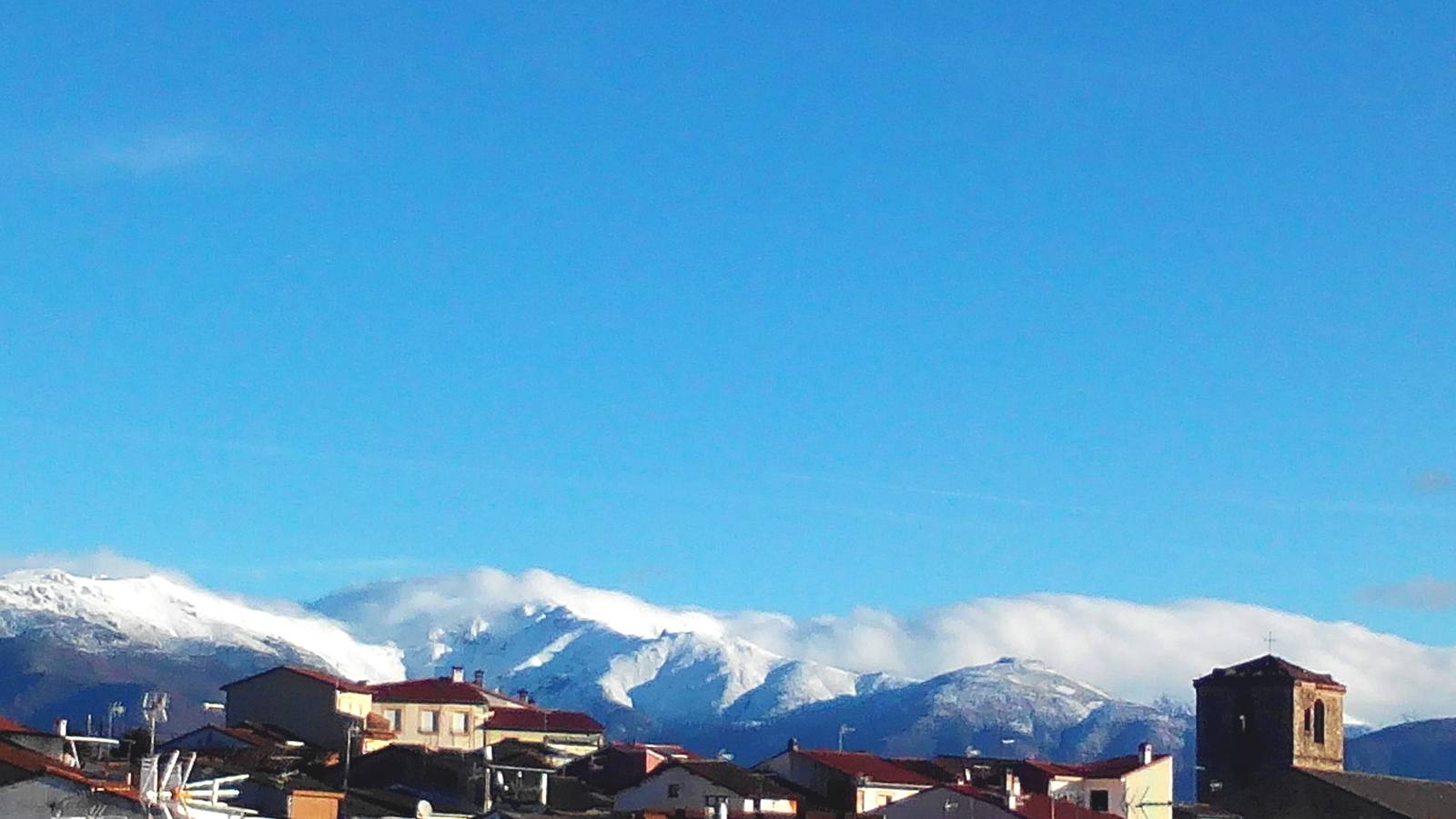 Desde el mirador del parque Los Bolos de Jaraíz de la Vera, así como desde cualquier punto del casco urbano, hasta que los nublados han tapado la sierra, se ha podido ver las cumbres y estribaciones de Gredos blancas.