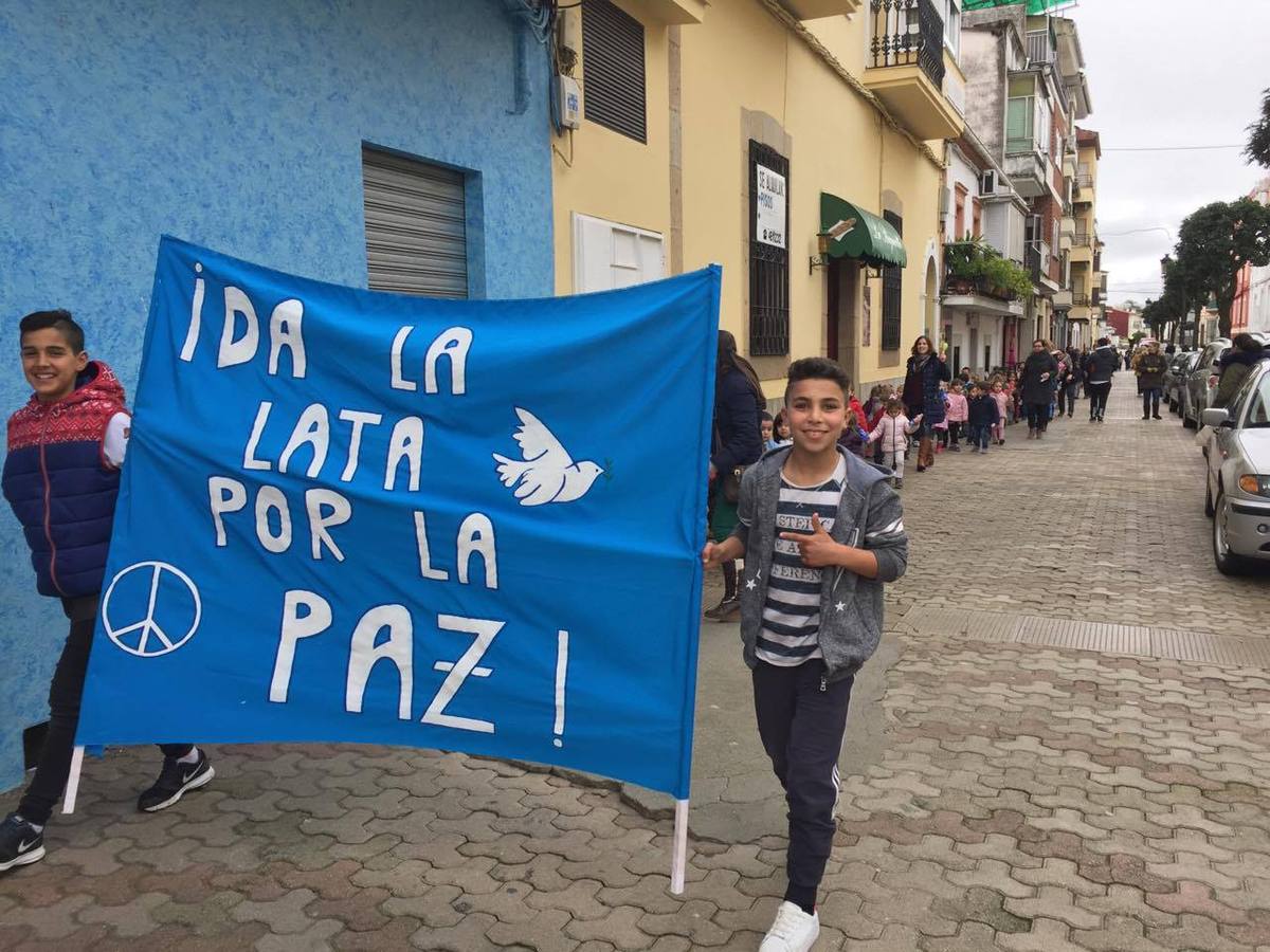 Esta mañana, por este motivo, ha tenido lugar una marcha desde el colegio hasta la avenida de Yuste, encabezada por una pancarta con el lema de esta jornada. Hemos ido desde el centro hasta la calle nueva haciendo ruido con latas y entregando mensajes de paz, han indicado desde el Ejido.