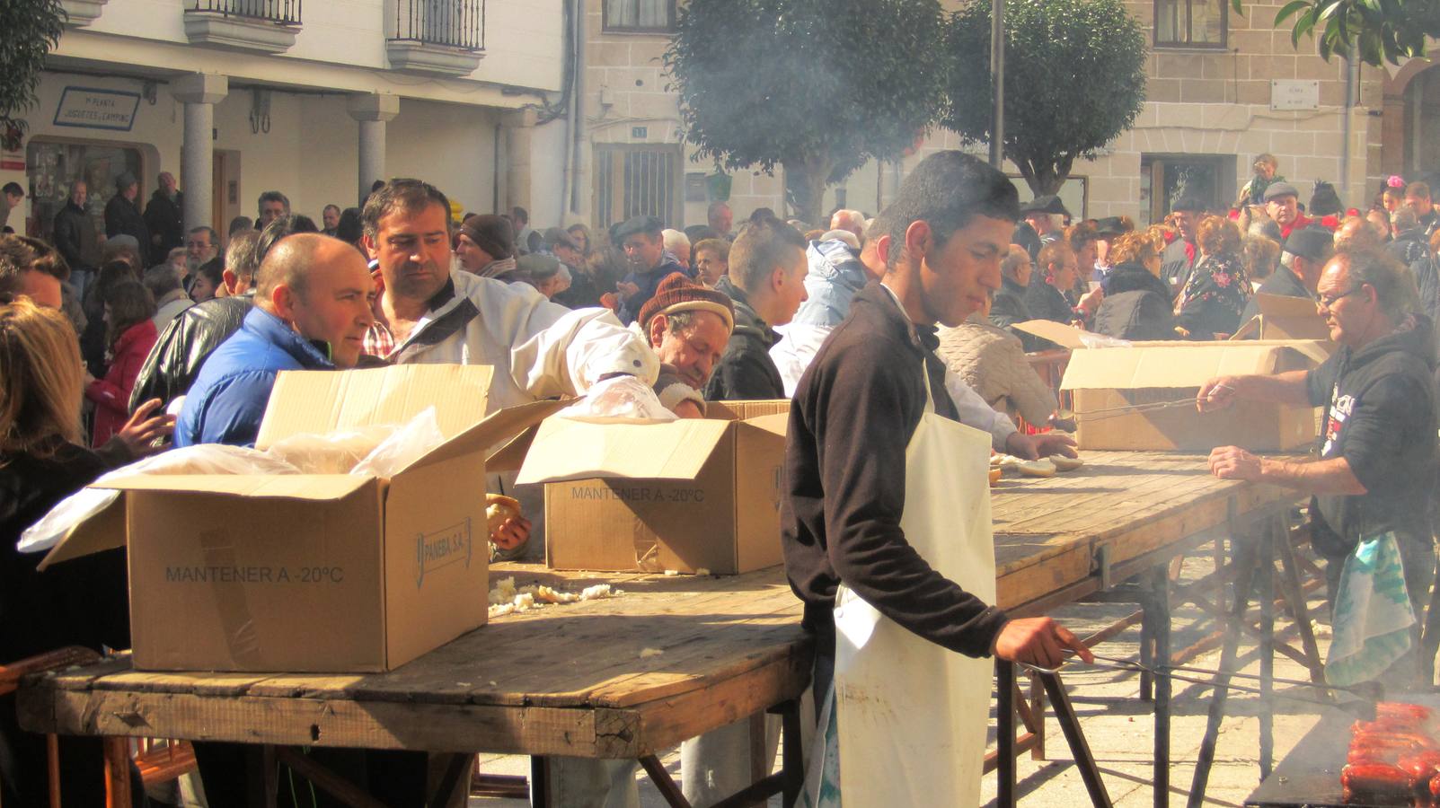 Kilos y kilos de chorizos asados con pan y ponche jaraiceño se repartirán, a partir de las 12.30 horas, en la Plaza Mayor, a todos los asistentes, ofrecidos por el Consistorio.