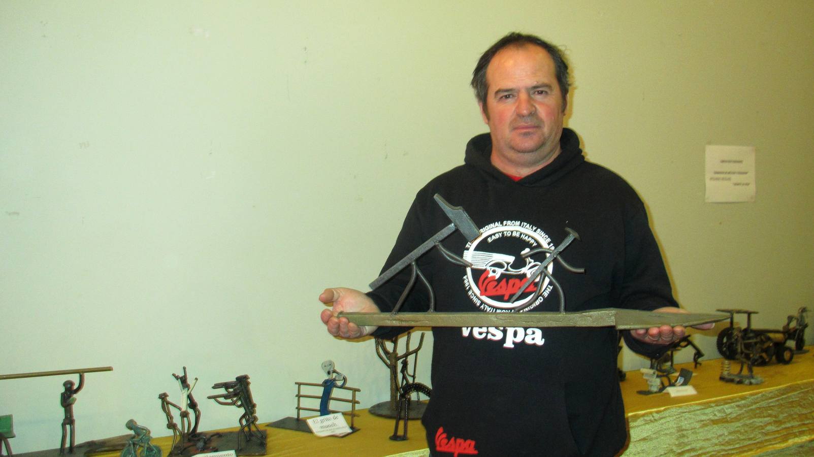 Todas sus creaciones son para exposiciones, no están a la venta, las hace para mostrarlas Lo hace dice para que la gente disfrute con sus figuras de cantantes, cazadores, baile flamenco, curas predicando, deportistas o trabajadores de diversos oficios surgidos del reciclaje de trozos de hierro de desecho que gracias a su recuperación no acaban en cualquier chatarrería, las cuales se podrán ver hasta el día 7 de enero.