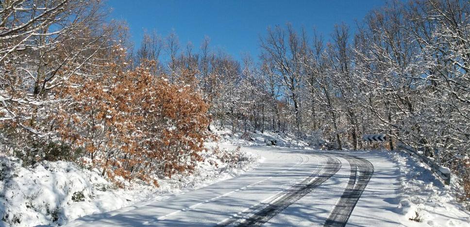 La carretera entre Piornal y Garganta la Olla, cerrada por nieve