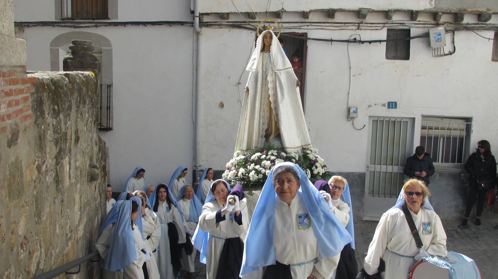 Después se retirará a la Virgen el manto negro para dejar al descubierto la vestimenta blanca. Seguidamente, se reanudará la procesión para regresar a la iglesia de Santa María. Esta vez los pasos irán juntos. Y, a continuación, misa solemne.