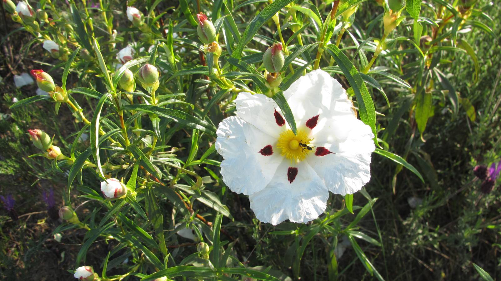 Uno de los orígenes de la población, aseguran los historiadores, tiene que ver mucho con esta planta (cistus ladanifel), con propiedades medicinales. Pero, lo que más llama la atención estos días es su floración, lo que representa un regalo para los sentidos.