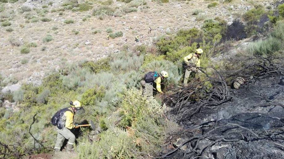 La Junta de Extremadura confirma que debido a la difícil orografía del terreno durante la noche no se pudo avanzar en la extinción de las llamas por el complicado acceso para los medios terrestres.