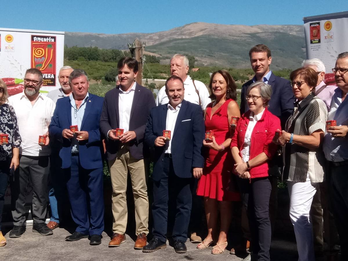 Intervinieron también en la presentación el alcalde de Jaraíz, Luis Miguel Núñez; el presidente de Aturive (Asociación de Turismo de la Vera), José Antonio Rodríguez; y el vicepresidente de la Diputación y responsable de Turismo, Fernando J. Grande, aparte de Francisco Simón, que cerró el acto, que tuvo lugar en la terraza del hotel rural Villa Xarahíz, con vistas a Yuste y Gredos, cuyo microclima, indicaron, favorece la producción del pimentón, que en el caso del verato se diferencia del resto no por ser ahumado sino secado al humo y que no es solo bueno, de calidad por el producto en sí mismo, sino por la historia que tiene, que hay detrás, resaltaron.