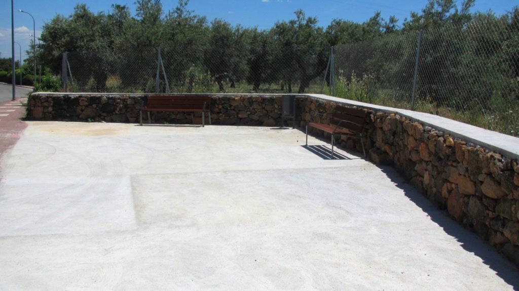 Este rincón, situado al final de la avenida de Hernán Cortes, a pocos metros del pabellón de deportes, se ha dotado de bancos y una papelera. Además de los vecinos podrán descansar en él los caminantes, toda vez que este lugar es muy transitado diariamente por mucha gente como ruta pedestre.