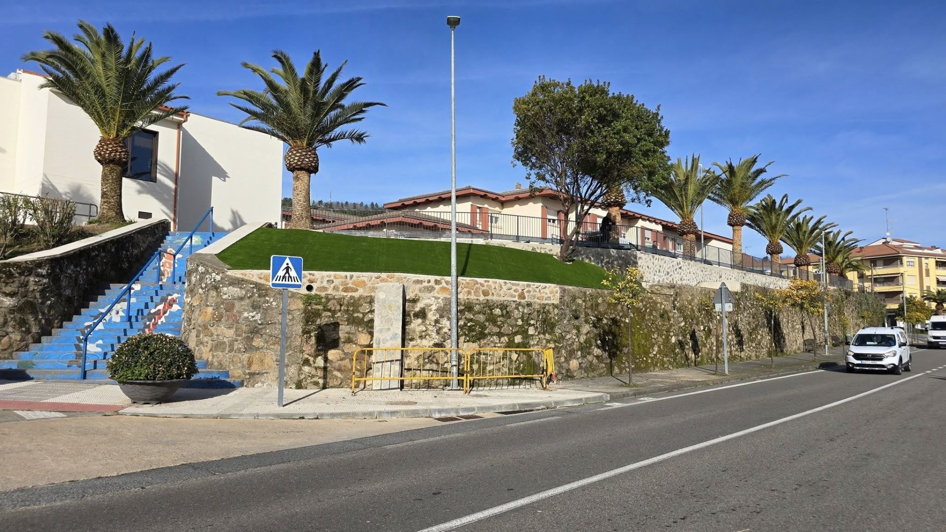 Entre las actuaciones acometidas, cabe destacar la colocación de césped artificial en una esquina, que se rematará con la instalación de un cartel retroiluminado con el escudo de Jaraíz sobre la superficie verde, que dará la bienvenida a los visitantes procedentes de Plasencia, al estar situado a la entrada de la localidad.