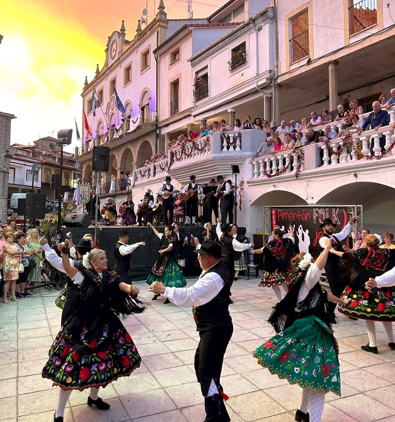 Este sábado, 7 de octubre, se ha celebrado la tercera edición del Festival Pimentón Folk, organizado por el Ayuntamiento de Jaraíz de la Vera y coordinado por los Coros y Danzas Los Jarentinos, con una amplia programación, en la que han destacado las actuaciones de siete grupos de folclore de la provincia de Cáceres, para exaltar al oro rojo verato, coincidiendo con el inicio del periodo de secado y elaboración.