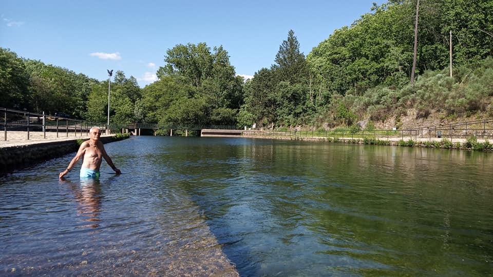 El jaraiceño Gregorio Jiménez se ha dado este miércoles el primer chapuzón en las fresquistas aguas de la garganta de Pedro Chate